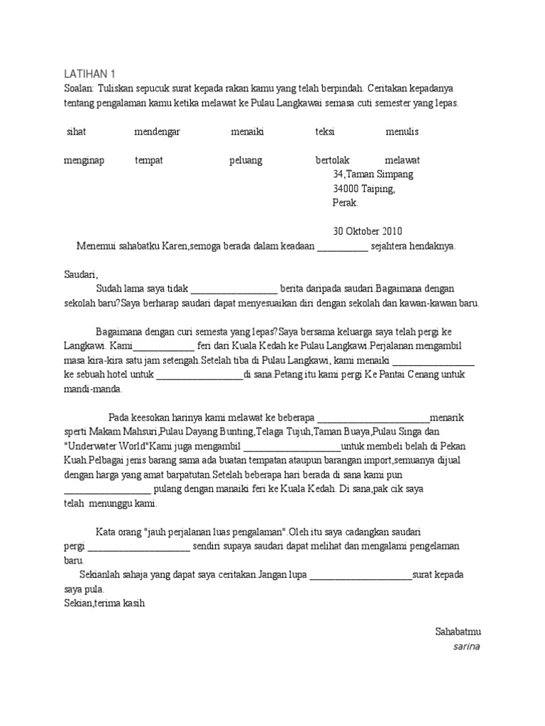 . 39 jalan damai taman bukit anggerik ipoh. Karangan surat tidak rasmi latihan karangan surat tidak rasmi id. Karangan Surat Tidak Rasmi Spm Tempat Pelancongan.